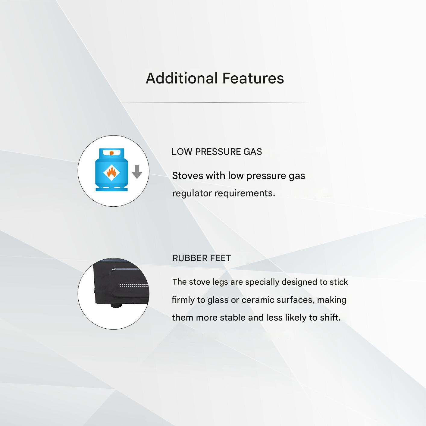 Gas Type Compatibility: LPG (Liquefied Petroleum Gas) Heat Efficiency: High-efficiency burners